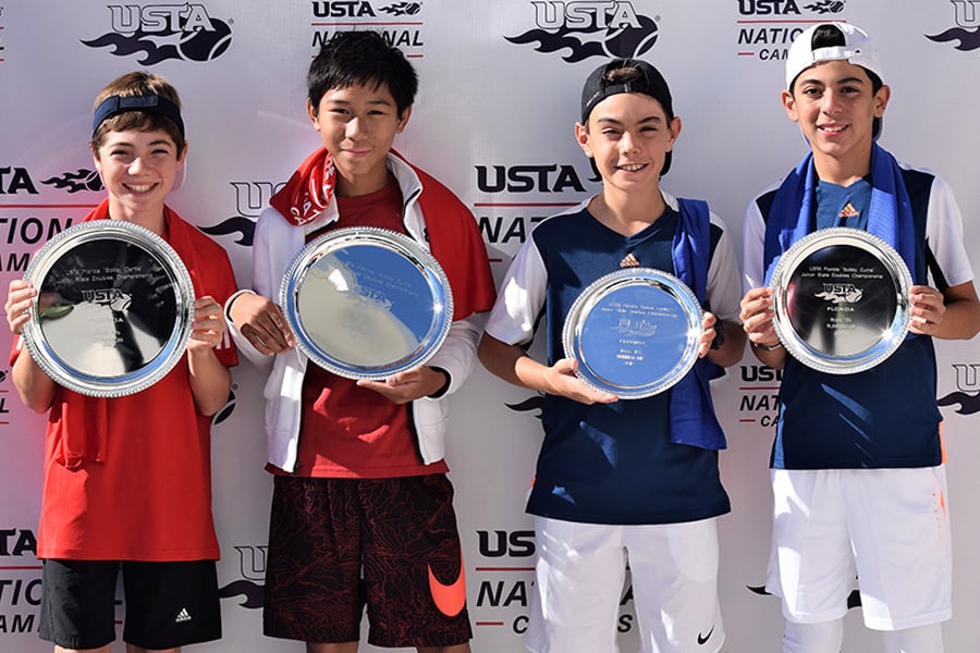 - Left to right: Boys’ 12s champs Hunter Nussbaum and Andre Medicielo, and finalists Julian Alonso and Andres Wolf