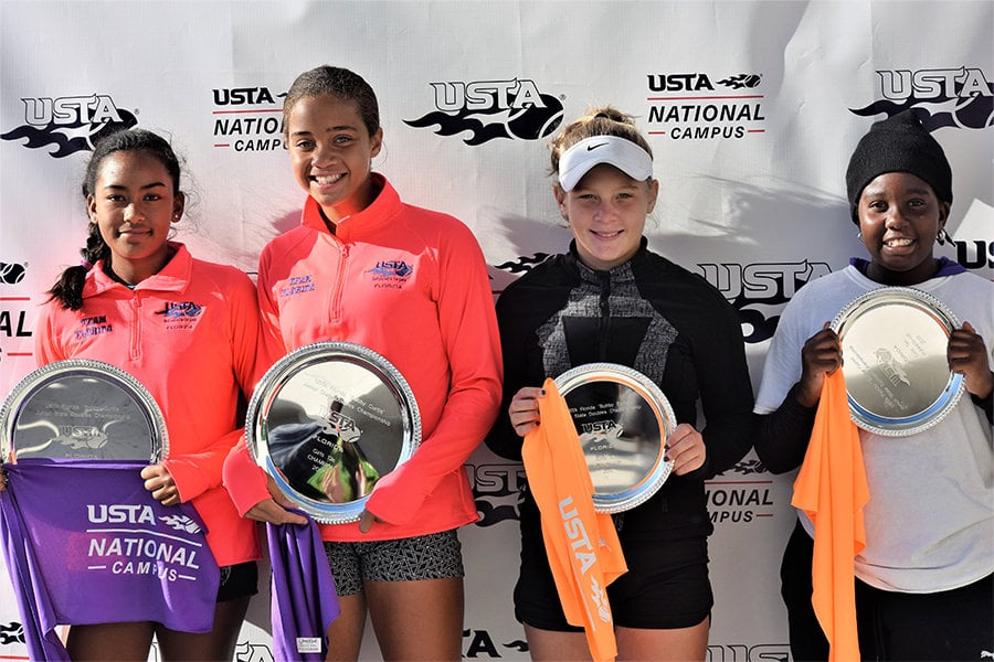 - Left to right: Girls’ 16s champs Ariel Johnson and Sophia Fornaris, and finalists Paris Hudson and Olivia Jablonski