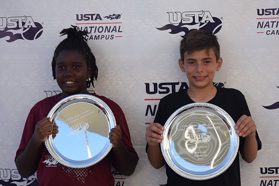Three players doubled-up on titles over the weekend when Florida state doubles champions were crowned in 12s-18s boys’, girls’ and mixed doubles divisions at the 69th USTA Florida “Bobby Curtis” Junior State Doubles Championships, held Oct. 28-30, 2017 at the USTA National Campus in Orlando and Sanlando Park in Altamonte Springs.
