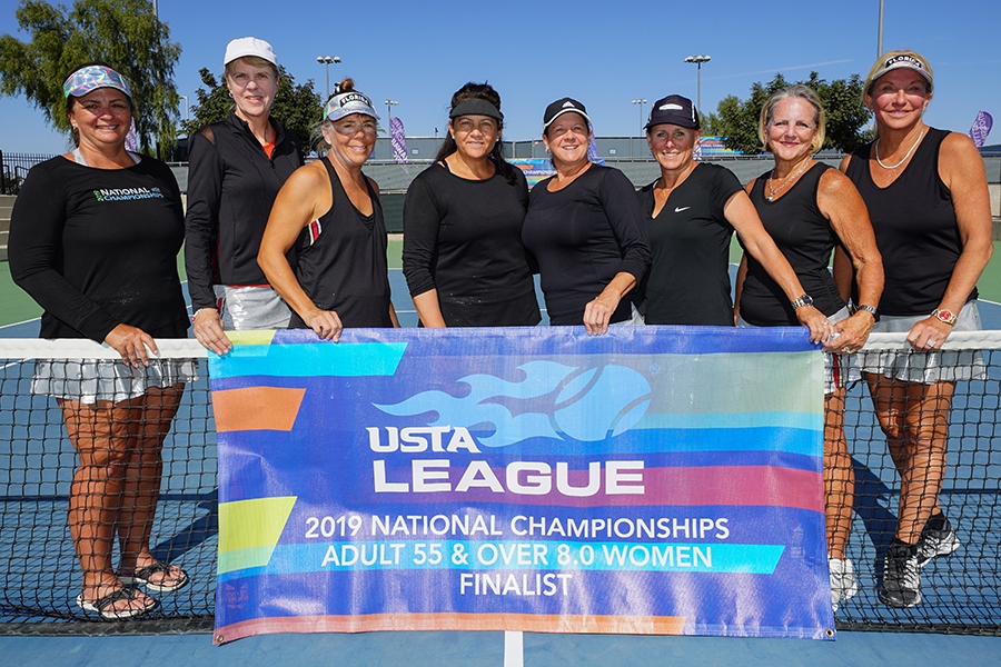 At the 55 & Over 8.0 national championships, the Florida team from Sarasota County (Longwood Athletic Club, Sarasota) fell in the final to the team representing the USTA Midwest Section (Michigan City, Ind.) 2-1 at the Surprise Tennis & Racquet Complex in Surprise, Ariz.