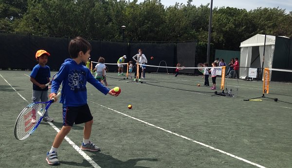 Following the Grandstand Court program, kids and whole families took to the Interactive Court for rallying and games on kid-sized courts with age-appropriate racquets and “orange balls,” adjacent to the USTA Florida booth.