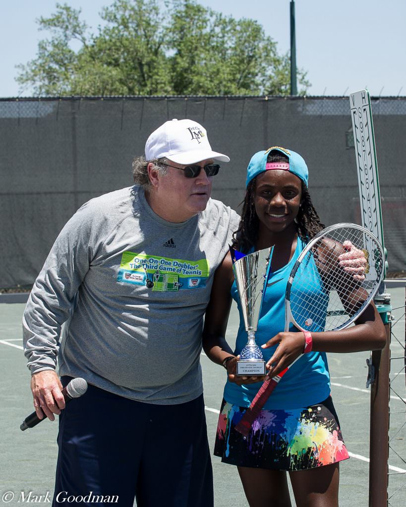Former singles Top 10er and world doubles No. 1 Emilio Sanchez won the pro division and $4,250, and Ft. Lauderdale’s Akasha Urhobo won the “Little Mo” division at the $15,000 Winter Haven One-On-One Doubles Shootout, held at the Country Club of Winter Haven on April 28, 2018.