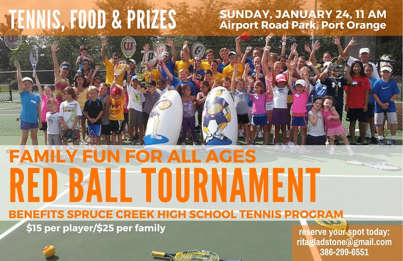 It will be family fun for all ages when Airport Road Park in Port Orange, Fla., hosts a tennis Red Ball Tournament on Sunday, Jan. 24, 2016 starting at 11 a.m.