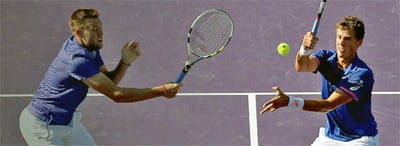 Canadian Vasek Pospisil (right) and American Jack Sock ride a nine-match winning streak into the doubles final (photo: ATP)