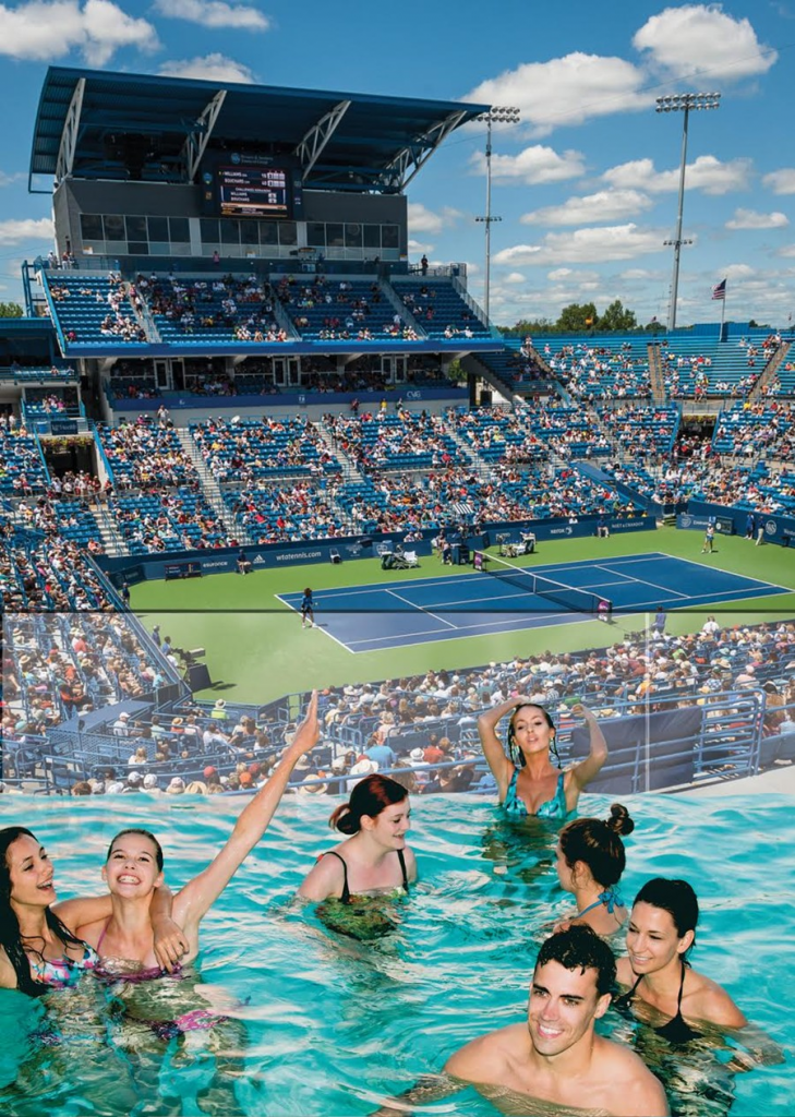 The Jacksonville Jaguars have nothing on the Cincinnati Western & Southern Open, which on April 1 unveiling their plans for their latest fan-first amenity, a swimming pool and lounge area located on a previously unused pad in the southeast Terrace section of Center Court at the Lindner Family Tennis Center. The 14,500 gallon swimming pool overlooking Center Court and a covered terrace lounge includes 30 ticketed premium lounge seats, each with access to the pool. Poolside beverage and food service is included with each ticket, ranging from $400 for a single session to $5,000 for the entire event. Locker rooms for guests will be provided in an adjacent south building. The entire construction of the Pool & Terrace, as noted, was to have a completion date of April 1, 2015. A “one-day only sale offering a 4.1% discount on tickets” was also available with the promo code “AprilPoolsDay.” Well played Cincy.
