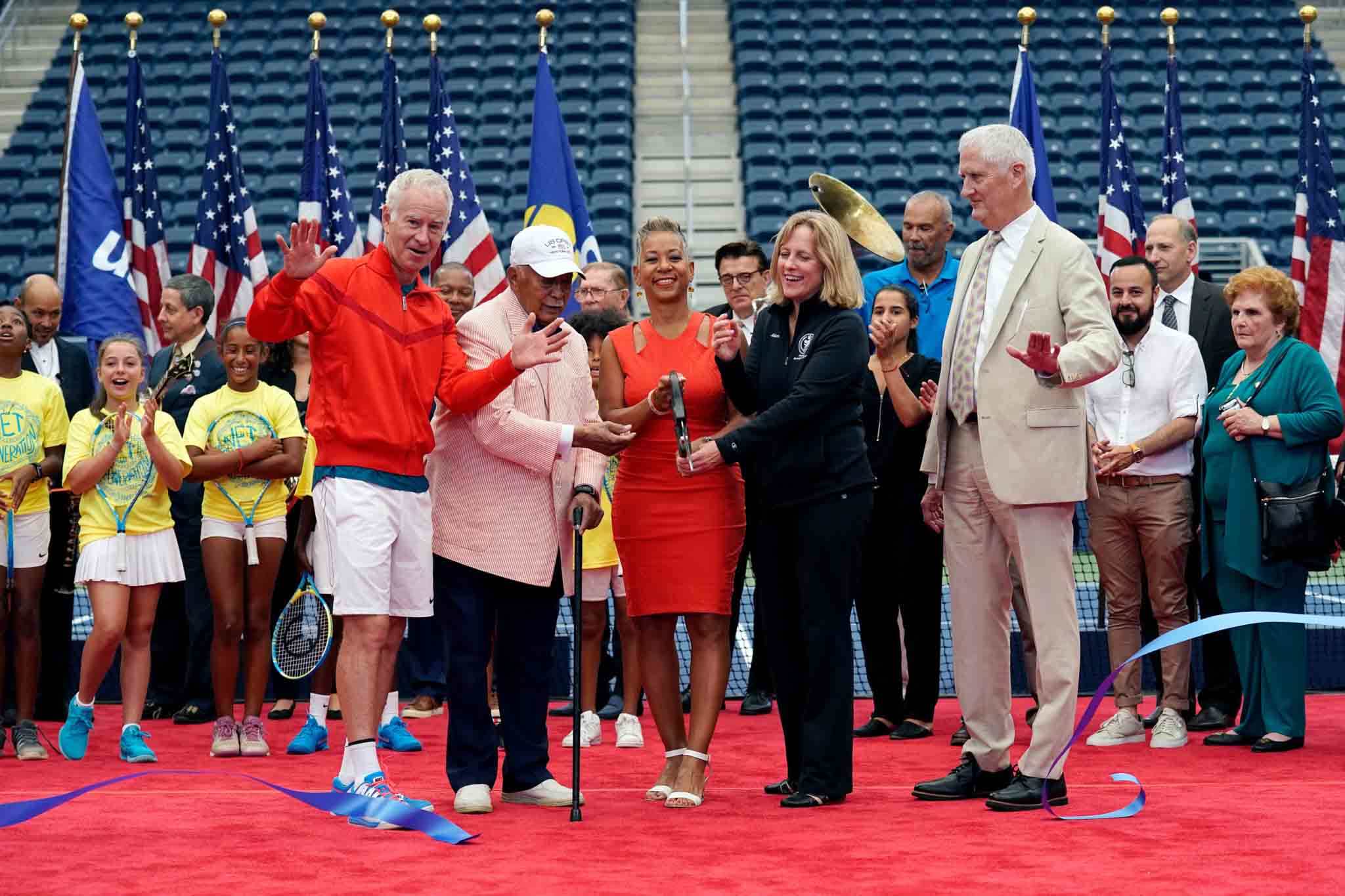 The new Louis Armstrong Stadium, the final piece in the five-year $600 million transformation of the US Open, was dedicated on Wednesday. Pictured are John McEnroe, former New York City Mayor David Dinkins, USTA Chairman of the Board and President Katrina Adams, Queens Borough President Melinda Katz and USTA Executive Director and CEO Gordon Smith who did the ribbon cutting…Novak Djokovic‘s win at Cincinnati last Sunday made him the first player in ATP history to win all nine Masters-level events in a career since the tournament level was instituted in 1990…Minutes before Serena Williams took the court in a 6-1, 6-0 loss to Johanna Konta weeks ago, she had just learned that the man who killed her sister Yetunde Price had been paroled…For the first time tennis fans can vote for the incoming International Tennis Hall of Fame class. Fans can cast their votes for nominees from Aug. 27-Oct. 7 at vote.tennisfame.com…The MaliVai Washington Youth Foundation in Jacksonville received a $11K donation from Florida Track & Field Gatorade State Player of the Year Caitlin Collier via the Gatorade Play It Forward initiative…On Tuesday American astronaut Andrew Feustel played the first tennis match in space aboard the International Space Station in a match powered by Net Generation…The US Open elevated No. 26-ranked Serena Williams to the No. 17 seed…The USTA National Campus continues to model for large tennis complexes across the U.S. — Clermont, Fla. (west of Orlando) just announced Olympus, a 250-acre sports complex near the western gateway of Walt Disney World that will include tennis training facilities among other sports. And a 35+ court tennis facility is going up in Mount Pleasant, S.C…The ITF has launched a campaign to promote gender equality, “Advantage All,” based around the “themes of empowerment, balance, culture, value and voice”…U.S. players in the final round of qualifying today at the US Open are J.C. Aragone, Colin Altamarino, Mitchell Krueger, Donald Young, Francesca Di Lorenzo, Nicole Gibbs, Danielle Lao, Jessica Pegula, and Jamie Loeb…French Tennis Federation officials say the catsuit that Serena Williams wore this year at Roland Garros will no longer be allowed because “You have to respect the game and the place.”…Alexander Zverev added Ivan Lendl to his coaching team…The ITF is doubling prize money for Fed Cup in 2019 and looking at a Davis Cup-like restructure.