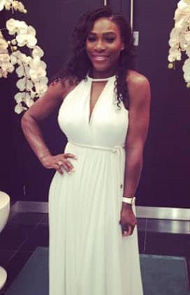 Serena Williams at the ITF champions dinner in Paris on Tuesday in a dress borrowed from pal Caroline Wozniacki