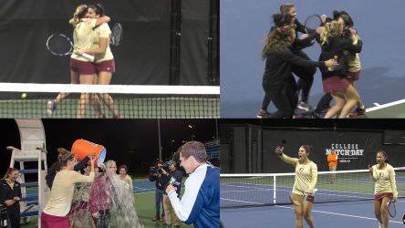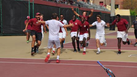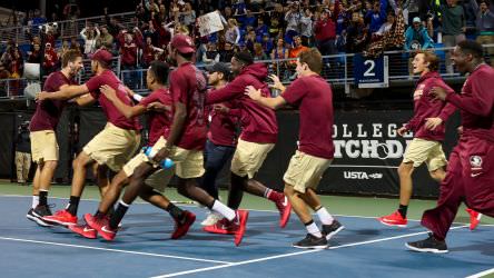 In front of a packed crowd of more than 2,000, the men’s team defeated the No. 8 Florida Gators 4-3 for the second consecutive year. On the adjacent courts the Florida State women’s tennis team defeated the No. 3 and defending national champion Florida Gators 4-1.
