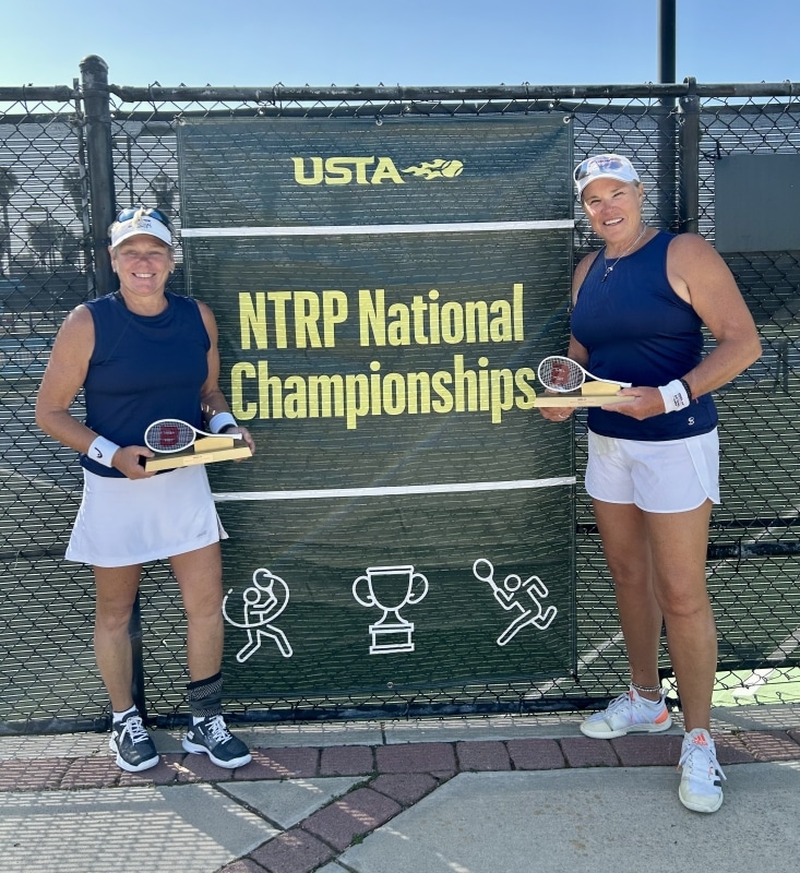 At the 55 & Over Nationals in San Diego, Jason Fair and Eliana Bigai won their respective singles brackets, and the duo of Sonia Denoncourt and Wendy Dingwall took home the 4.0 Women’s Doubles title. “We are so excited to have won the National Championship 4.0 division double in San Diego this April,” they said. “What a great tournament, competitive and great athletes!