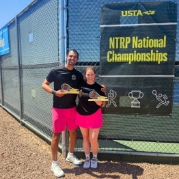In Mixed 18 & Over play, Damaso Marcano teamed with Jean Krejci to win the 3.5 Mixed title, adding to his singles championship earlier in the month. “We’re incredibly proud and grateful to have won the 3.5 Mixed Doubles Title at the USTA NTRP National Championships in Phoenix, Arizona,” they said. “Beyond the wins, what made this experience truly special were the amazing people we met. The spirit of the tournament was so welcoming, and we connected with players who share the same passion and love for tennis that we do. We walked away not just with a trophy, but with new friendships and unforgettable memories”