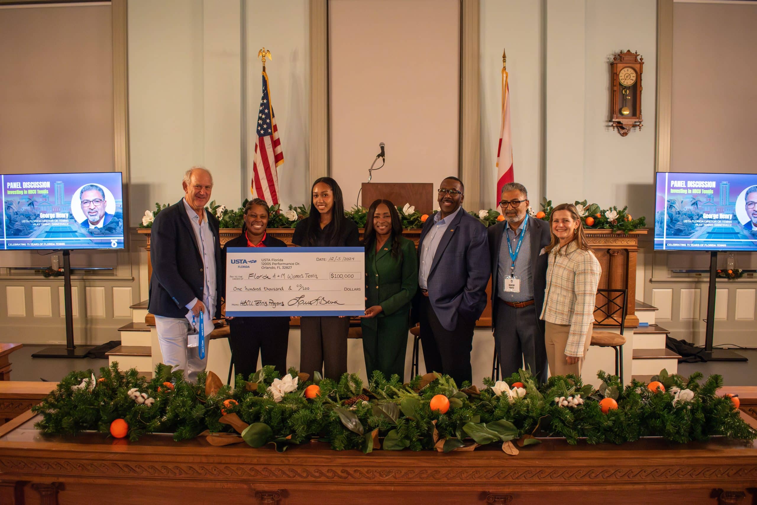 TALLAHASSEE, FLA., DECEMBER 5 – USTA Florida wrapped up its 75th Anniversary regional celebration series with a dynamic and impactful event in Tallahassee, Florida, at the Florida Historic Capitol Museum. The day-long event emphasized the value of tennis as a tool for community engagement, economic growth, and personal development, while inspiring attendees to become advocates for the sport. Also, it featured a special HBCU Program Support Grant presentation for Florida A&M University.